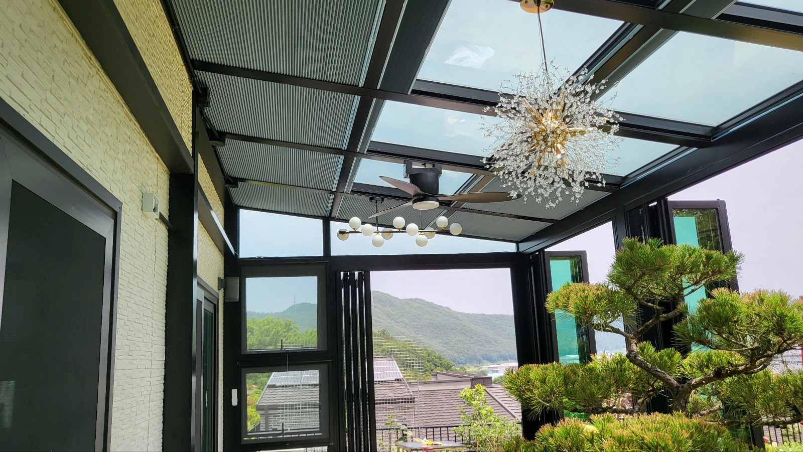 겨울에는 따뜻한 온실, 여름에는..뜨거운 사우나? 라는 생각 때문에 썬룸 설치를 주저하는 분들이 계실겁니다.지붕에 차양막을 씌우자니 고급스러운 썬룸과 전원주택에 맞지 않는것 같고...전동
